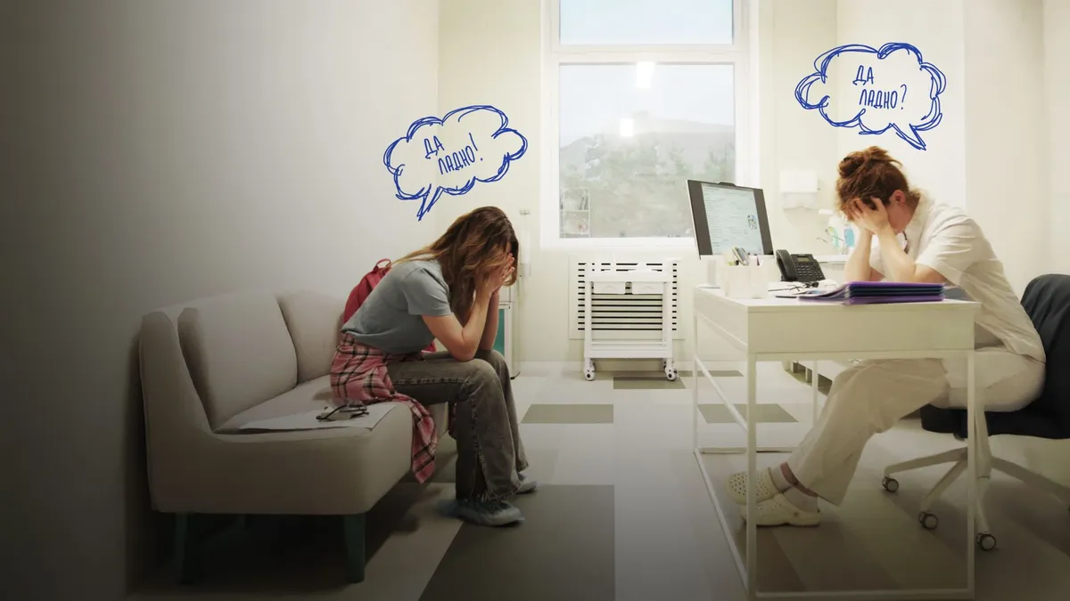 Бывают дни, когда все идет наперекосяк. Для главной героини обычный поход в поликлинику оборачивается чередой нелепых ситуаций. Сначала рвется петелька на куртке и не проходит оплата в регистратуре, а потом и врач на приеме долго не может понять цель ее визита — чем дальше, тем больше их диалог напоминает театр абсурда. Как вести себя в подобных ситуациях, чтобы не потерять лицо и выйти из медицинского учреждения с гордо поднятой головой?