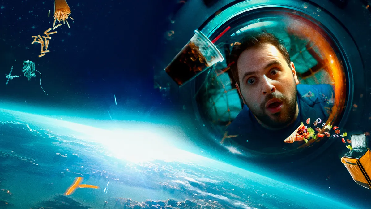 Улётная французская комедия для всей семьи. Али — обычный доставщик еды. У него нет ни амбиций, ни планов, зато дома ждёт заботливая мама и чудесная дочка. Мужчина плывёт по течению, не зная проблем, пока его бывшая жена не требует алименты — 9 000 евро. У Али таких денег нет, но очередной заказ приводит курьера в космический центр, где готовят астронавтов для новой миссии. Мужчина решает заработать и отправляется искать эксклюзив для прессы, и вскоре обнаруживает себя… на орбите! Теперь Али придётся стать настоящим космонавтом и выполнить важную миссию, чтобы дочка наконец-то могла им гордиться.