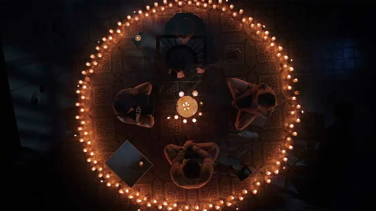 Группа друзей решает сыграть в спиритическую игру. Они должны сесть все вместе в круг из свечей, зажечь одну из них и рассказать страшную историю напротив зеркала. По мере того как рассказываются истории и зажигаются свечи, друзья начинают ощущать чьё-то присутствие. Но как бы ни было страшно, эту игру нельзя прерывать, иначе на всех участников обрушится страшное проклятье.