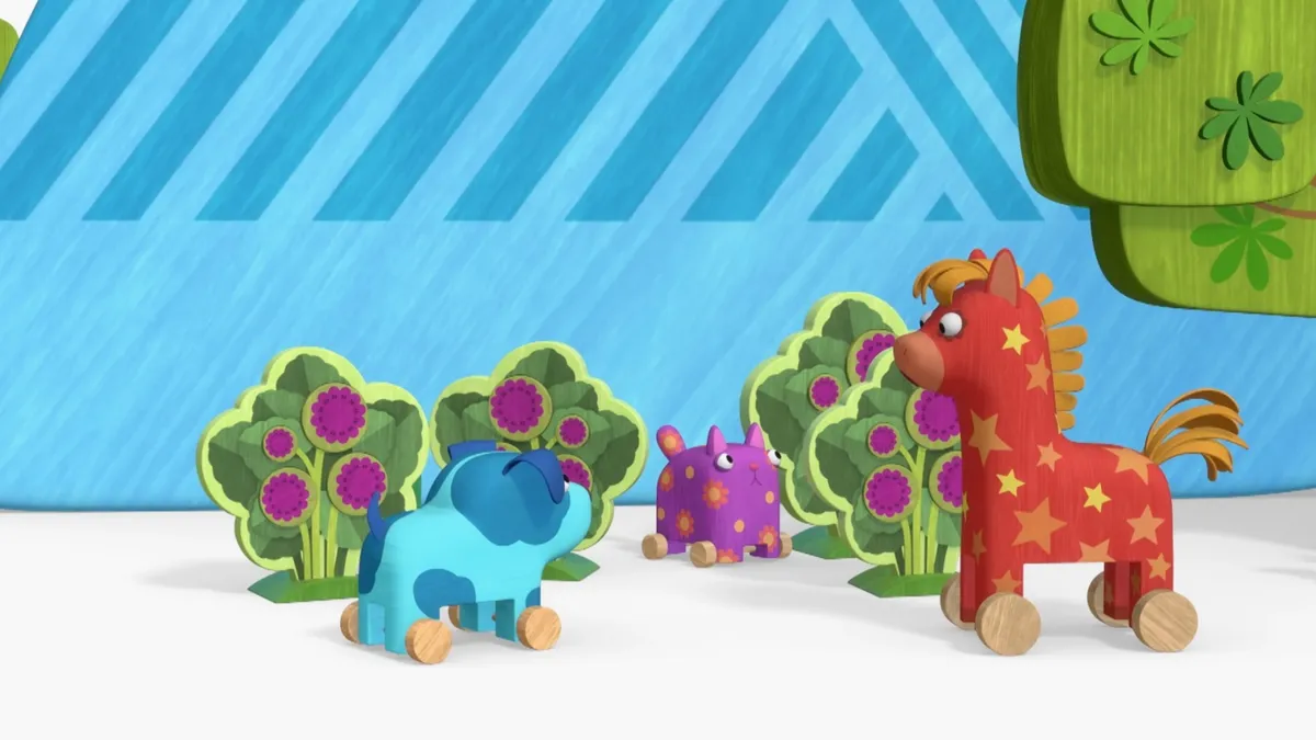 Главные герои — деревянные игрушки — поют песенки о дружбе, благодарности и распорядке дня. Сериал расскажет ребёнку, почему так важно ужинать, что такое день и ночь, и о необходимости благодарить за помощь.