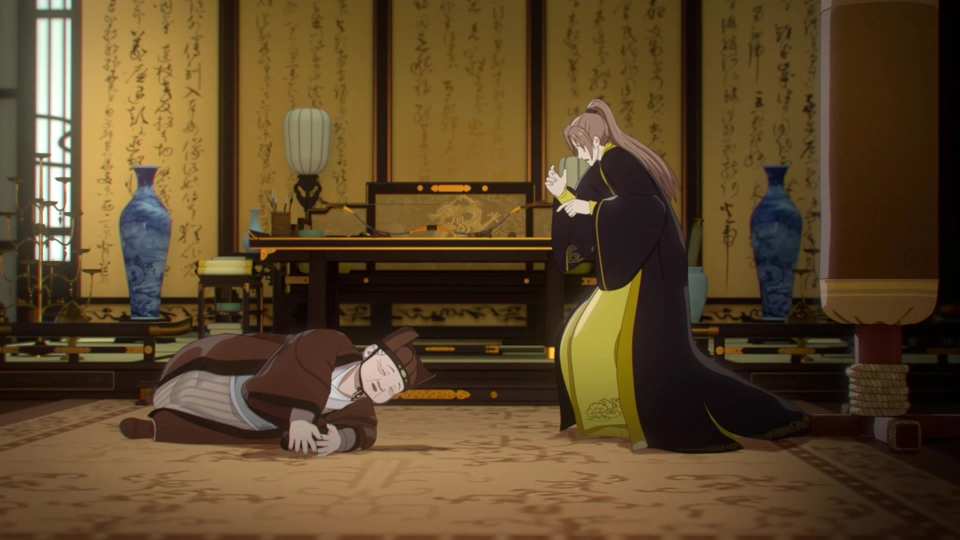 Императрица в теле мужа принимает чиновников, с трудом удерживая военных и гражданских советников от прямого конфликта. В то же время император в теле императрицы пытается разобраться в дворцовых интригах собственного гарема. Императрица в теле императора знакомится с неведомой ей прежде стороной младшего брата императора, который оказывается жалким попрошайкой.