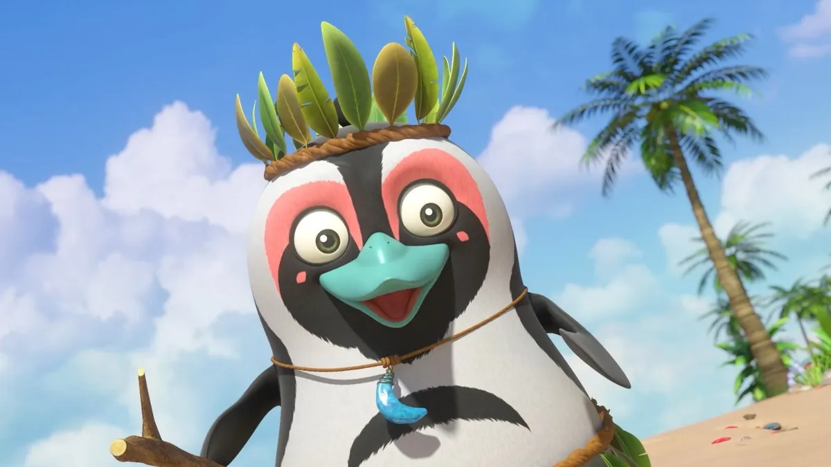 Друзья-путешественники отдыхают на пляже. Дуда, Чико и Баббл отправляются на прогулку на ракетной лодке Скота, но тропический шторм уносит их на необитаемый остров. Там они встречают Джека, африканского пингвина, который не умеет плавать и тоже застрял на острове. Чтобы помочь новому другу и спастись самим, ребята строят плот и учат Джека плавать. Все ли у них получится?