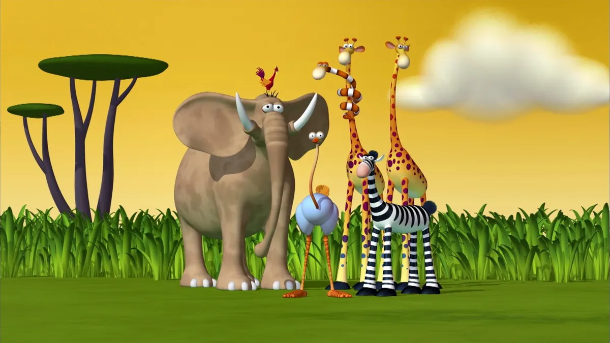 Мультфильм для детей дошкольного возраста. Забавные приключения семерых друзей: слона, птички, змеи, страуса, зебры и двух жирафов. Они живут в далекой африке среди зеленой травы и фиолетовых баобабов, где каждый день происходят удивительные истории. Искрометный юмор, обаятельные герои и красочная 3-D анимация не оставят равнодушными ни детей, ни взрослых!