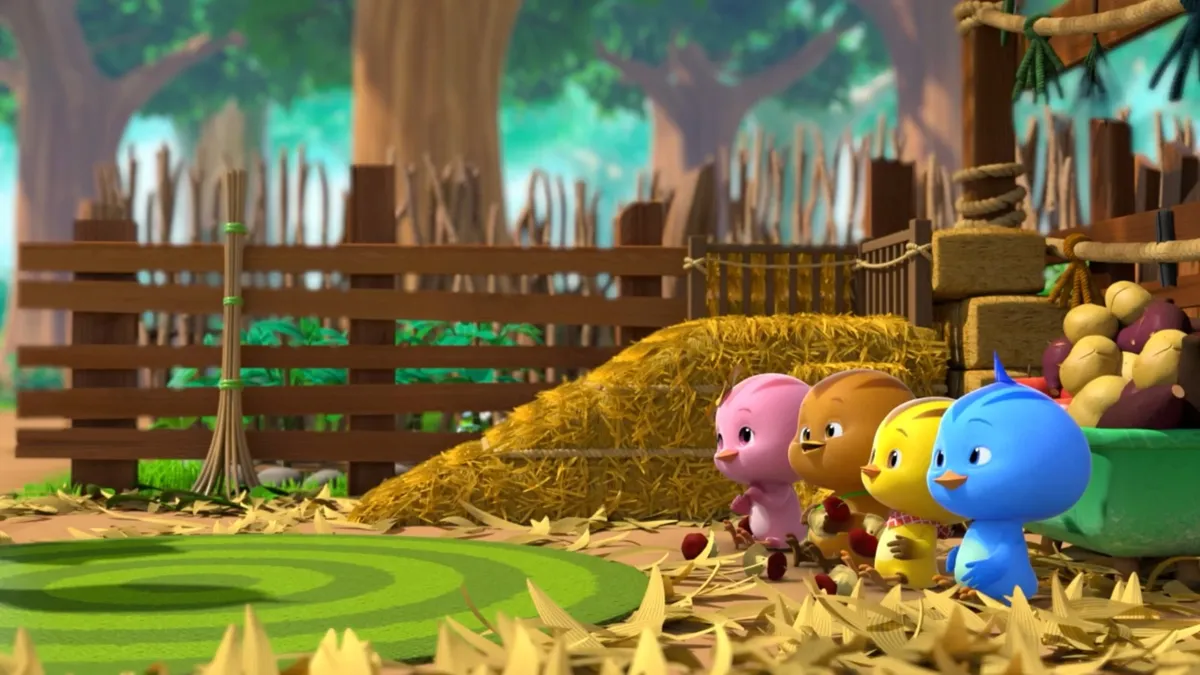В солнечном лесу на зелёной лужайке живёт весёлая семейка фазанов — миссис Катури и её разноцветные детишки. Старший Бобби больше всех похож на маму из-за коричневого окраса, он довольно неуклюжий и пугливый, но порой проявляет удивительную храбрость. Синенький Джек — самый непоседливый из птенцов, жёлтый малыш Чип — самый юный и любознательный, а сестричка этих троих Дури — самая смелая, и у неё красивые розовые перья. Каждый день очаровательные фазанята попадают в смешные истории, познают мир и радуют других обитателей леса своей непосредственностью. С этими малышами точно не соскучишься!