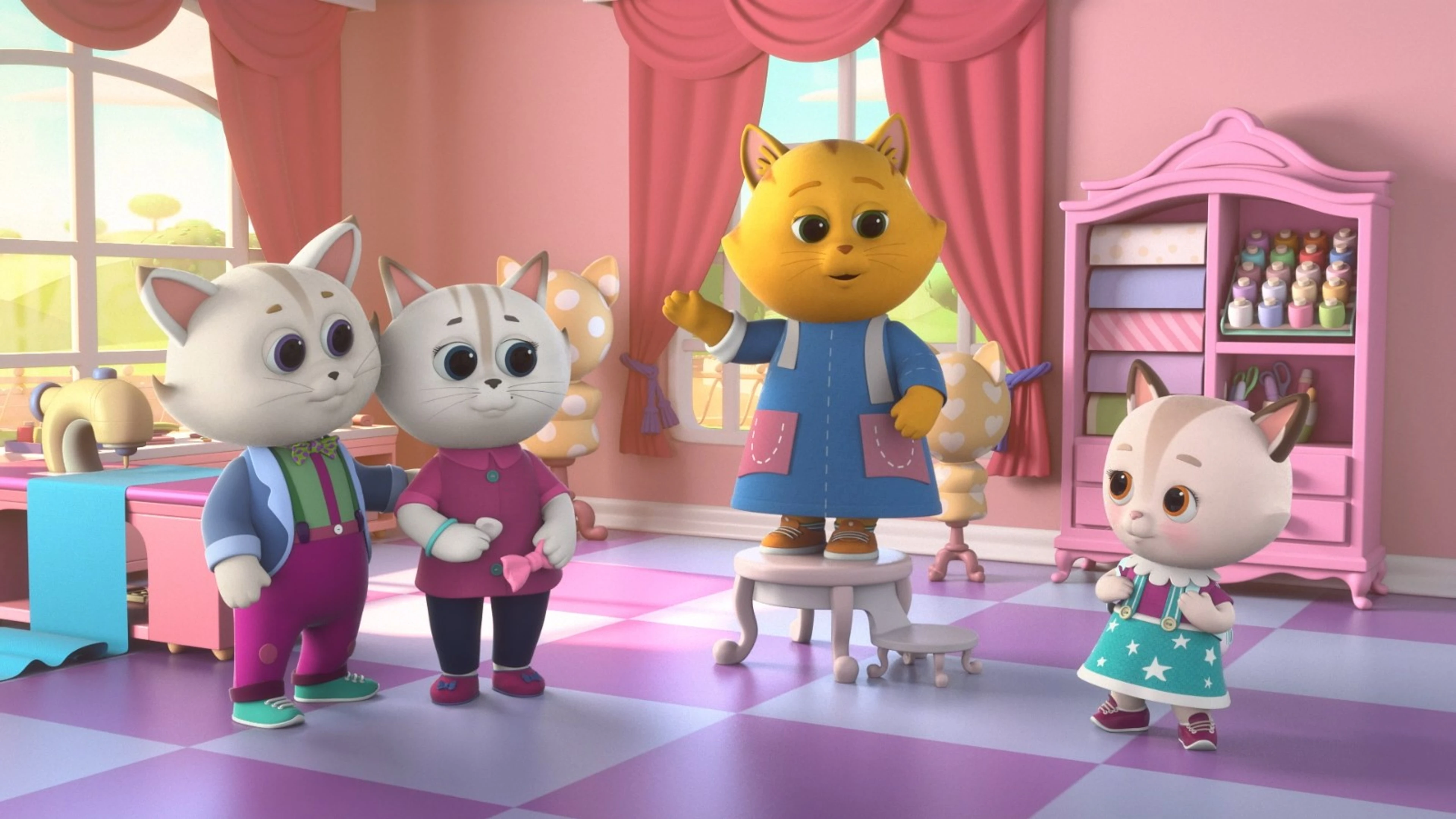 Мультсериал про небольшой городок, где в уютных домиках живут семьи кошечек и собачек. Каждая семья в этом городе владеет «маленьким бизнесом». Каждый занимается своим делом, и только группа маленьких непосед нарушает размеренную жизнь города. Это детишки-первоклашки (две кошечки и четыре собачки) – неразлучные друзья.