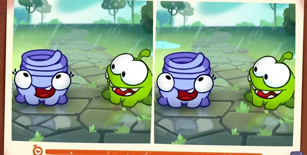 Ам Ням попал в каменный век! Пока зеленый монстрик ищет древние сладости, ты можешь найти несколько отличий на двух кадрах.
