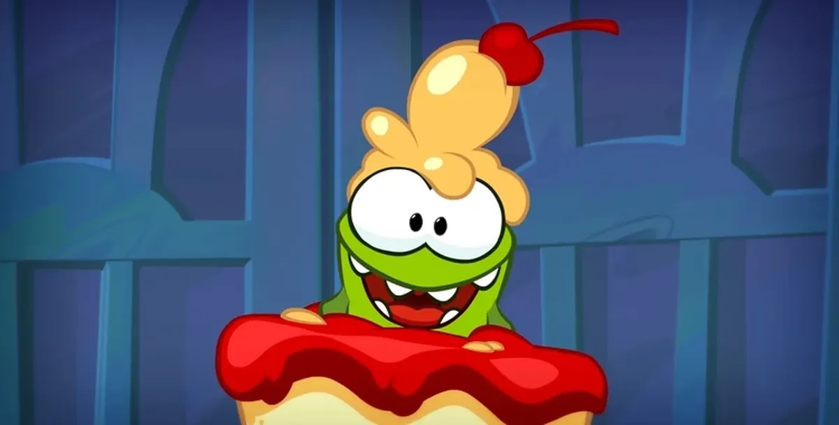 Ам Ням попал в каменный век! Пока зеленый монстрик ищет древние сладости, ты можешь найти несколько отличий на двух кадрах.