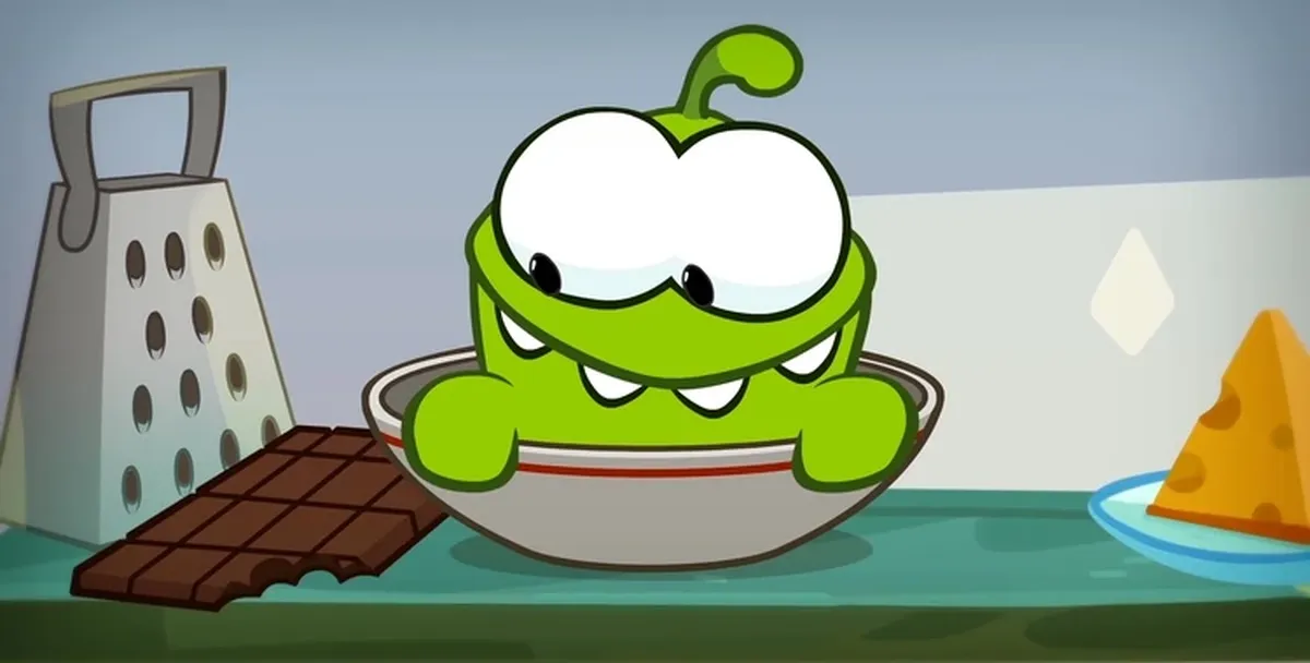 Пицца может быть сладкой, если повар — зелёный монстрик Ам Ням, который и дня не может прожить без конфет и печенья.