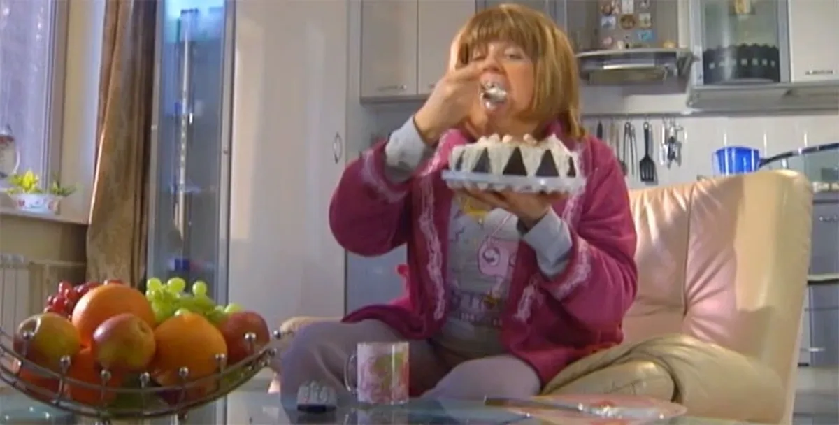 Энджи и Крис пытаются самостоятельно справиться с бардаком посреди комнаты. Худеющая Ирина читает женский роман, чтобы отвлечься от еды.