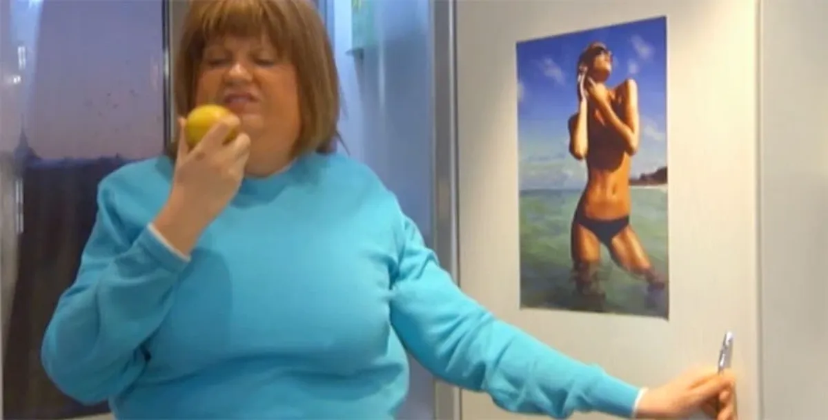 Энджи и Крис пытаются самостоятельно справиться с бардаком посреди комнаты. Худеющая Ирина читает женский роман, чтобы отвлечься от еды.