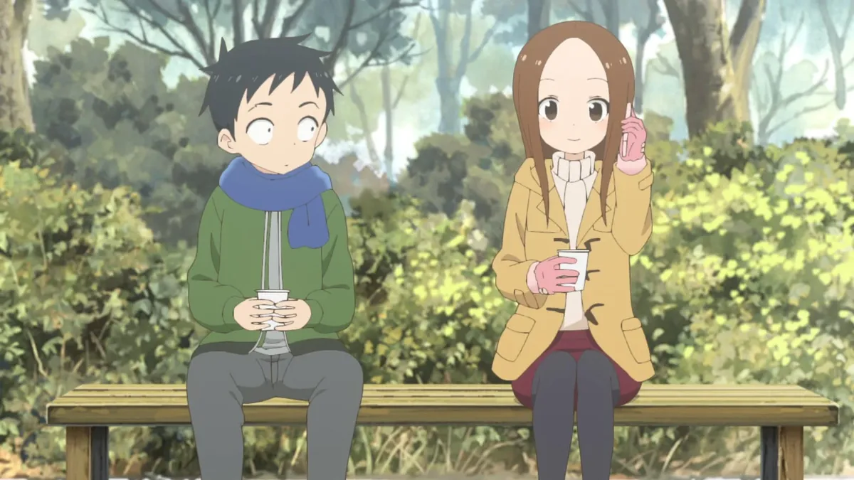Истории о будущем и неловкие разговоры о вкусах заставляют Нисикату краснеть сильнее обычного. Подготовка к школьному фестивалю и рыбалка у пруда приводят к мгновению, где Такаги поддерживает его не только на словах.