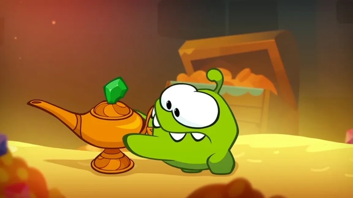 Оказавшись в жаркой пустыне, Ам Ням нашёл пещеру с сокровищами. Она такая древняя, что в ней можно отыскать даже лампу с настоящим джином.