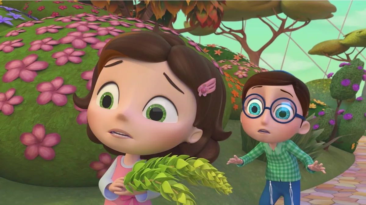 Пока мама хлопочет по дому, а папа на работе, дети хотят играть и веселиться. Между шалостями сообразительная Дина, начитанный Даня и любознательный малыш Яша стараются помогать родителям, но вокруг столько непонятных предметов! Хорошо, что непоседы нашли вход в волшебную комнату: там можно получить ответы на все вопросы. Увлекательные приключения в чудесном мире помогут детям узнать всё о еврейской культуре. Как испечь праздничный хлеб хала, когда нужен бокал для кидуша, сколько свечей зажигают в больших семьях — так начинается путешествие к основам иудейских традиций.