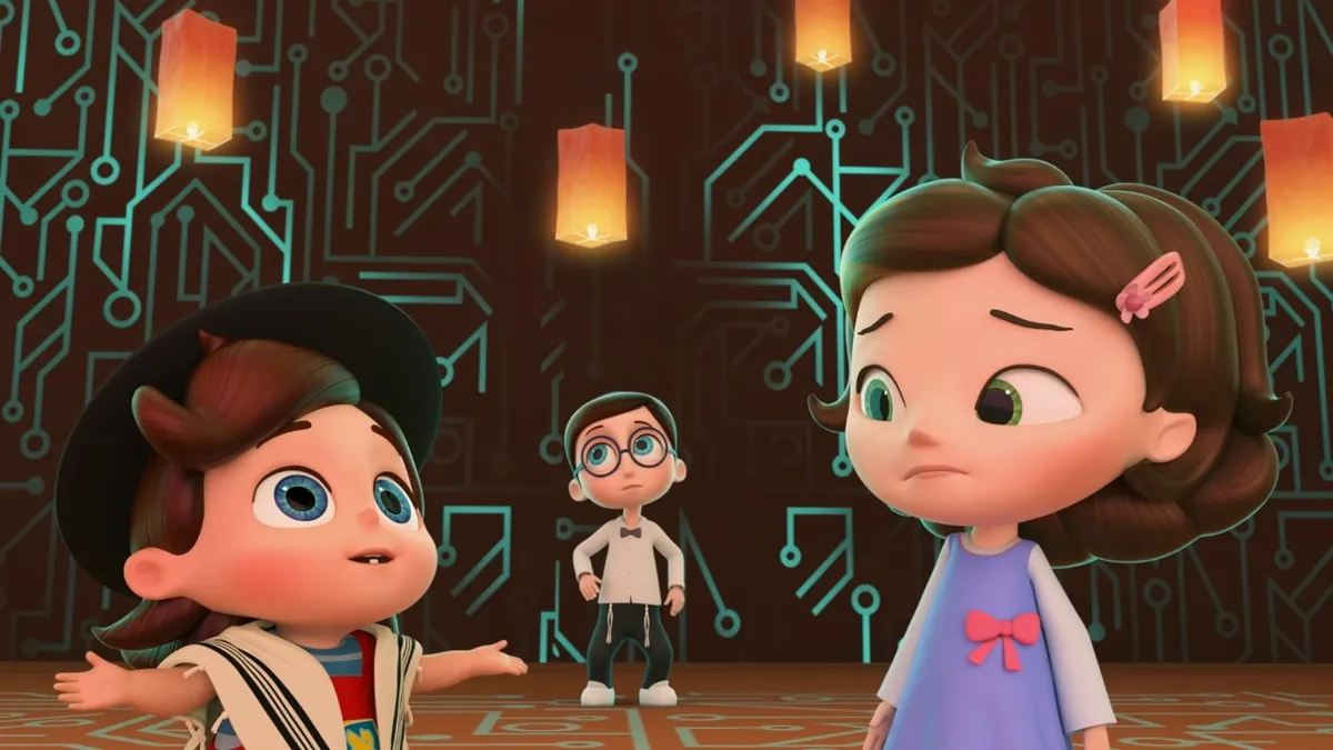 Пока мама хлопочет по дому, а папа на работе, дети хотят играть и веселиться. Между шалостями сообразительная Дина, начитанный Даня и любознательный малыш Яша стараются помогать родителям, но вокруг столько непонятных предметов! Хорошо, что непоседы нашли вход в волшебную комнату: там можно получить ответы на все вопросы. Увлекательные приключения в чудесном мире помогут детям узнать всё о еврейской культуре. Как испечь праздничный хлеб хала, когда нужен бокал для кидуша, сколько свечей зажигают в больших семьях — так начинается путешествие к основам иудейских традиций.