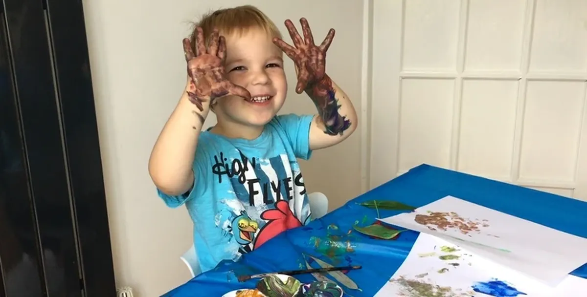 Опавшие осенние листья можно использовать как штампы для картины. Немного красок, и они превратятся в инструмент юного художника.