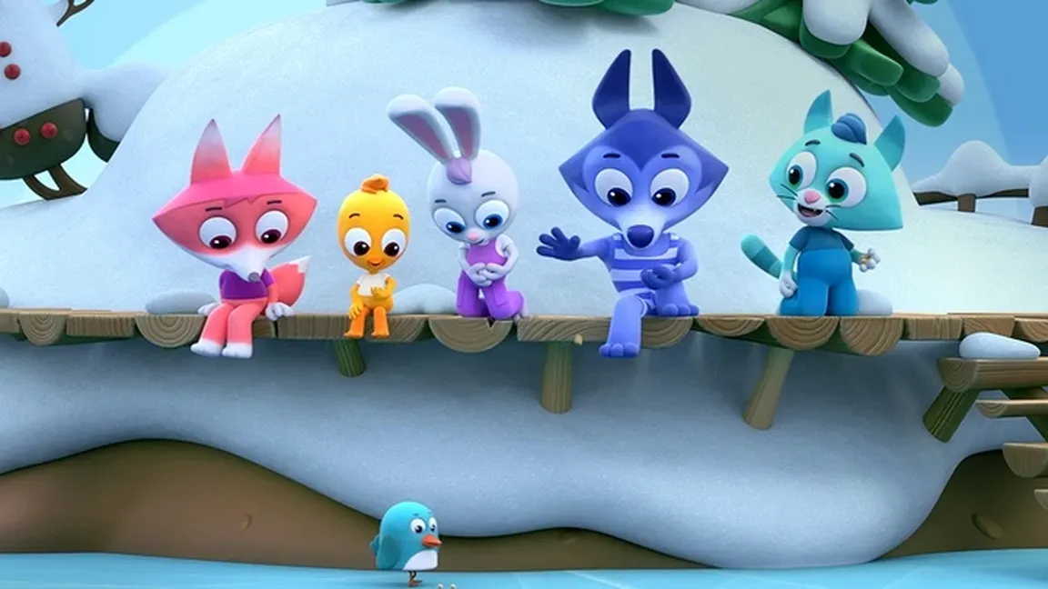 Волчонок У позвал друзей в гости, но тут неожиданно начал капать дождик. Малыши не волнуются: они знают, как не намокнуть!