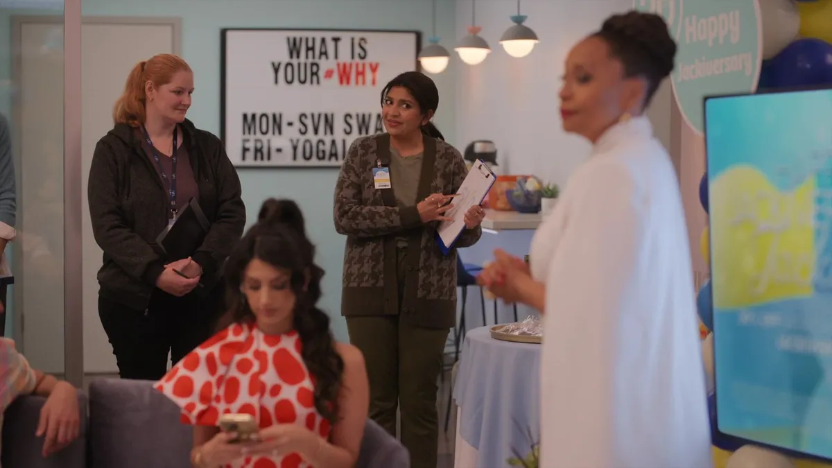 Патрисия устраивает приём в честь предшествующего благотворительного марафона и узнает неприятную новость. Джеки не нравится ее положение на канале.