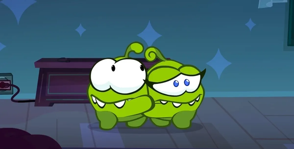 В дом к Ам Нямам пробрался странный зверь, управляющий электричеством. Зелёные монстрики с ужасом отбиваются от нападок непрошенного гостя.