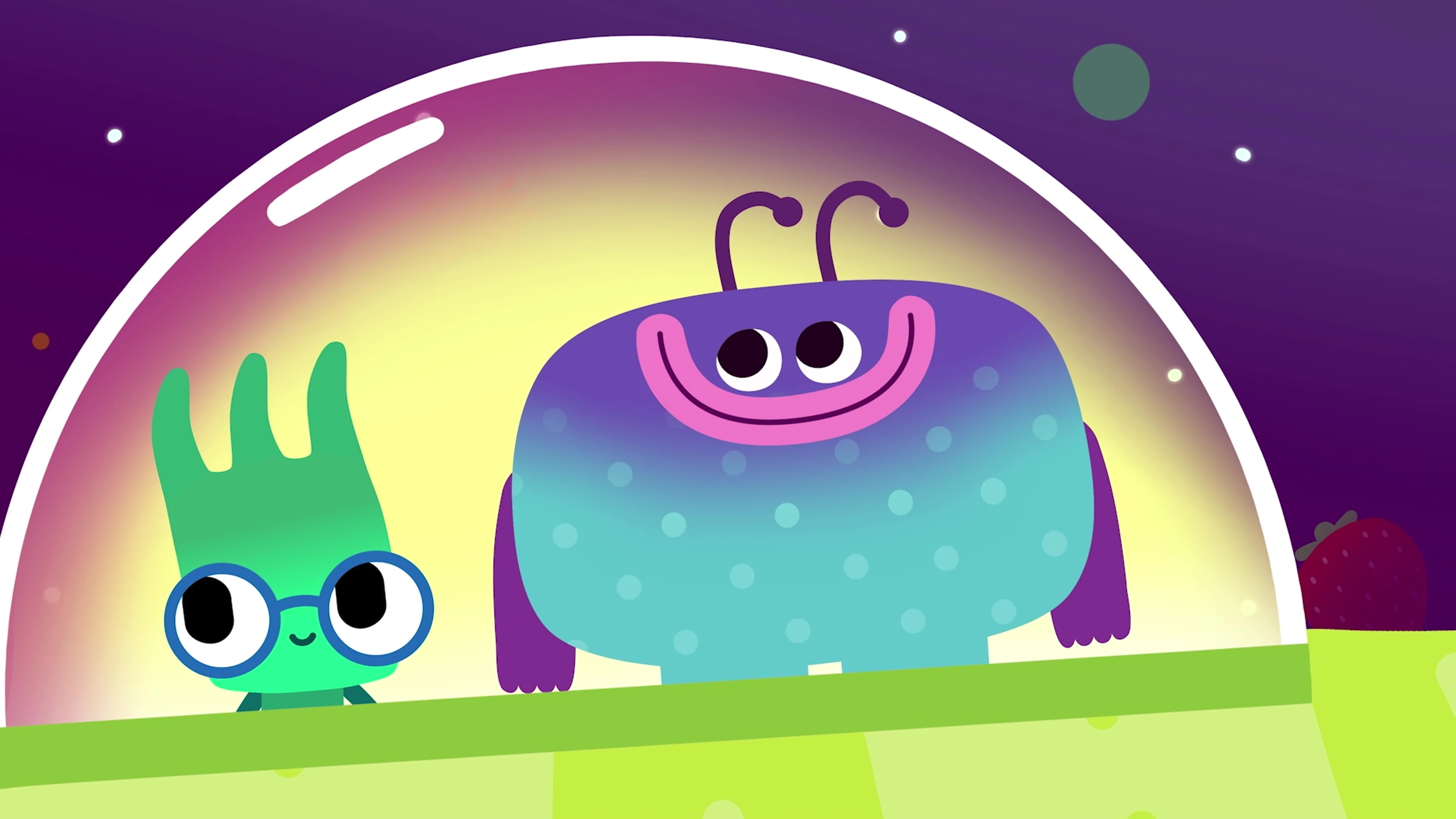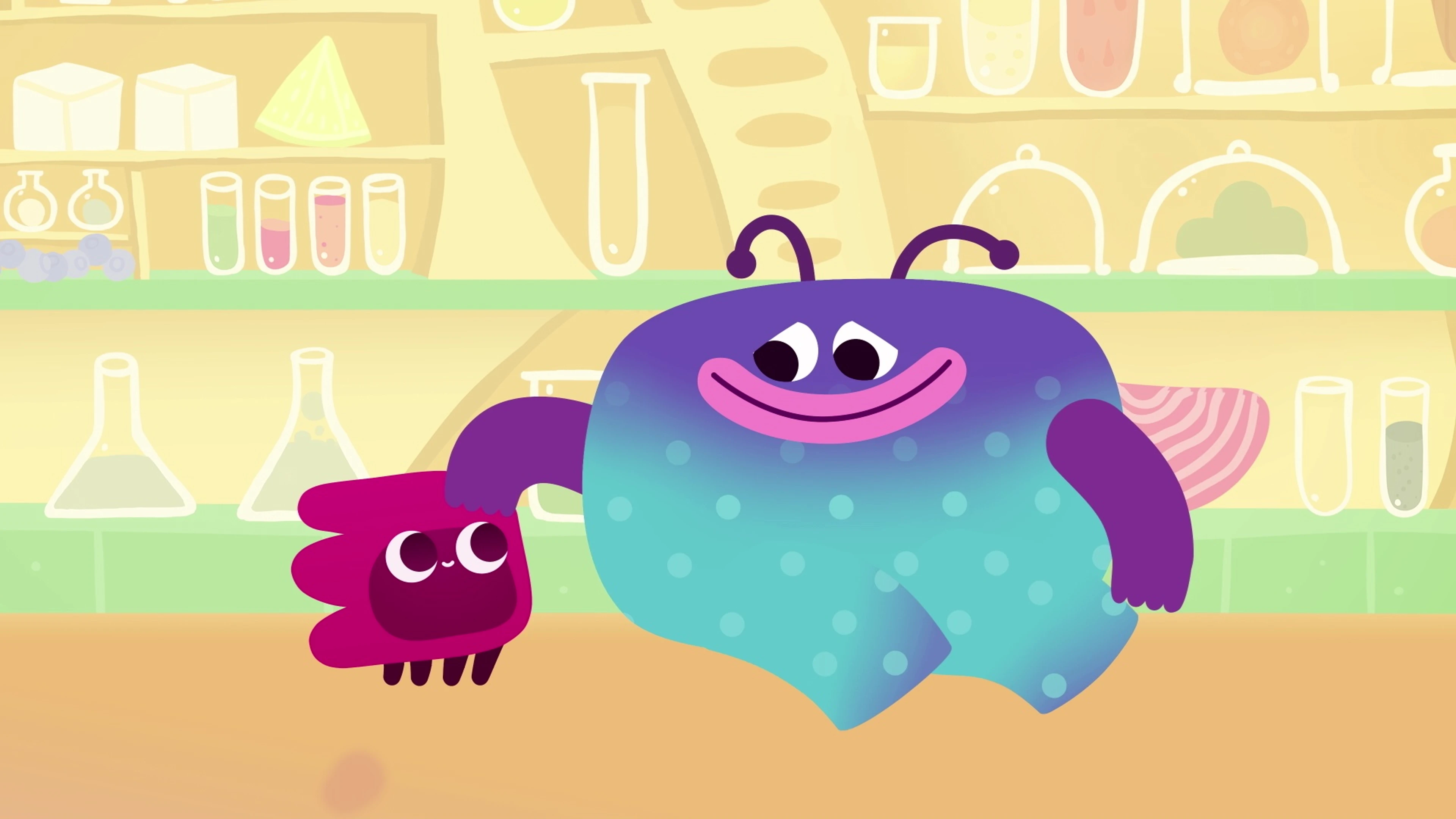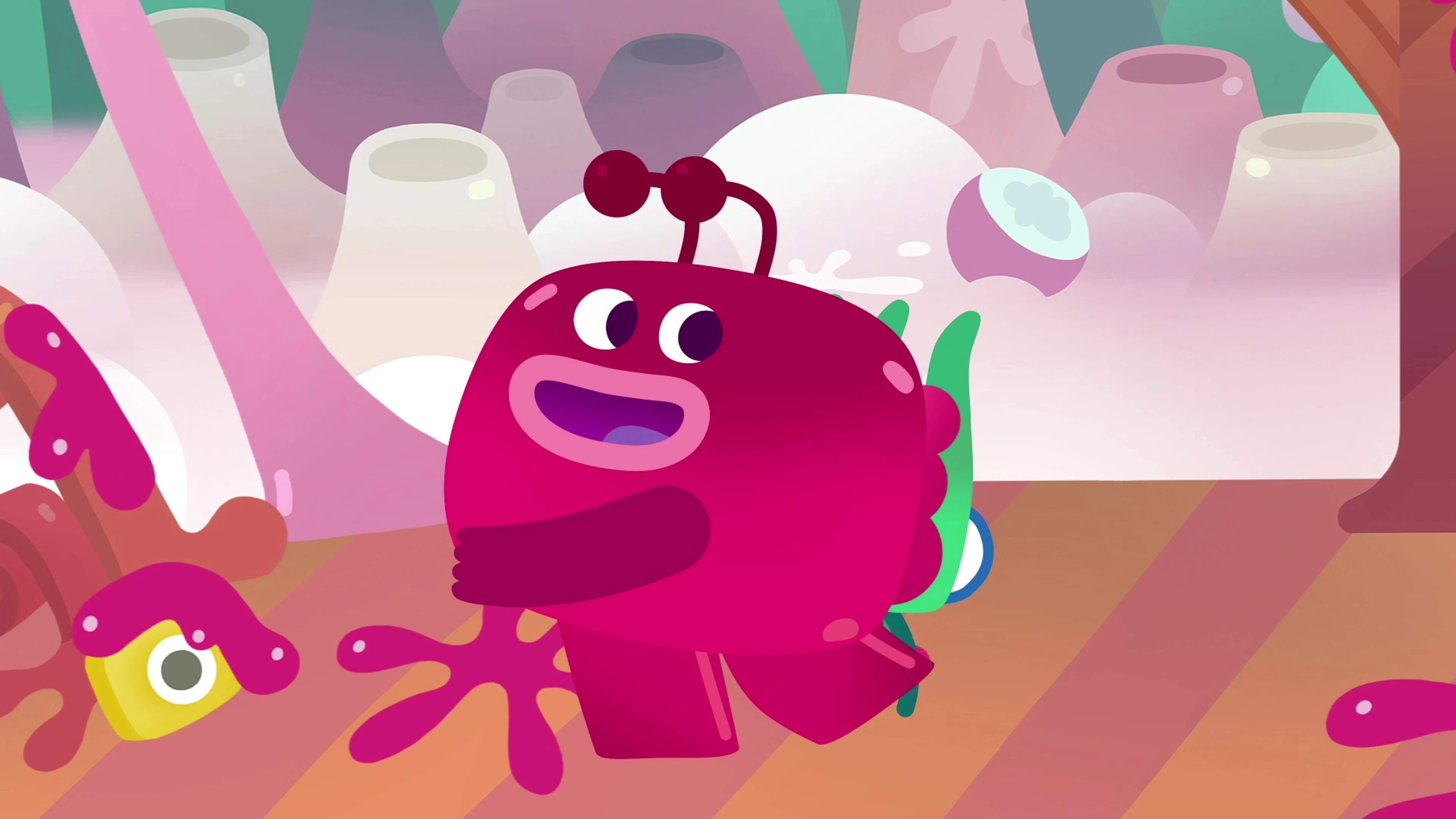На одной очень вкусной планете, где всё состоит из еды, живут очкарик Ум и обжора Хрум. Совместные авантюры заносят их то в Тортовые горы, то на Супное море. Но Хрум не может удержаться и всё время переедает, превращаясь в то, что съел: то в зефир, то в разноцветное драже, то в гамбургер, фрикадельку и даже в майонез. При этом парочке приходится спасаться от обитающих на планете монстриков: Булкозавра, Мармеладного червя и Мегаудона. Мудрый Ум помогает другу в самых безвыходных ситуациях и подсказывает, что во всём надо знать меру. Вместе с забавными героями — навстречу съедобным приключениям!