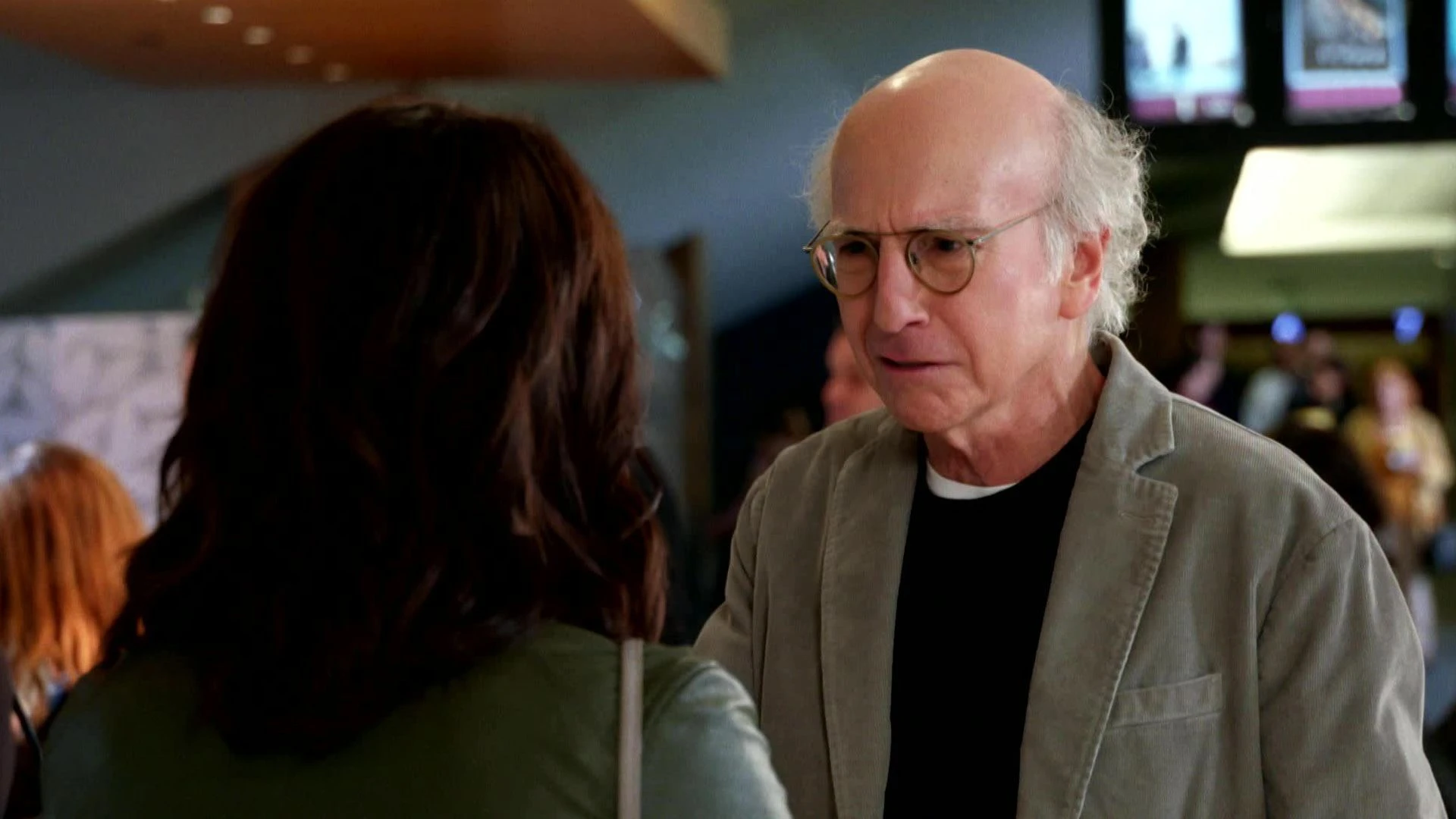 Ларри противостоит разъяренной очереди в буфете, вступившись за посетителя, который не намерен ждать.