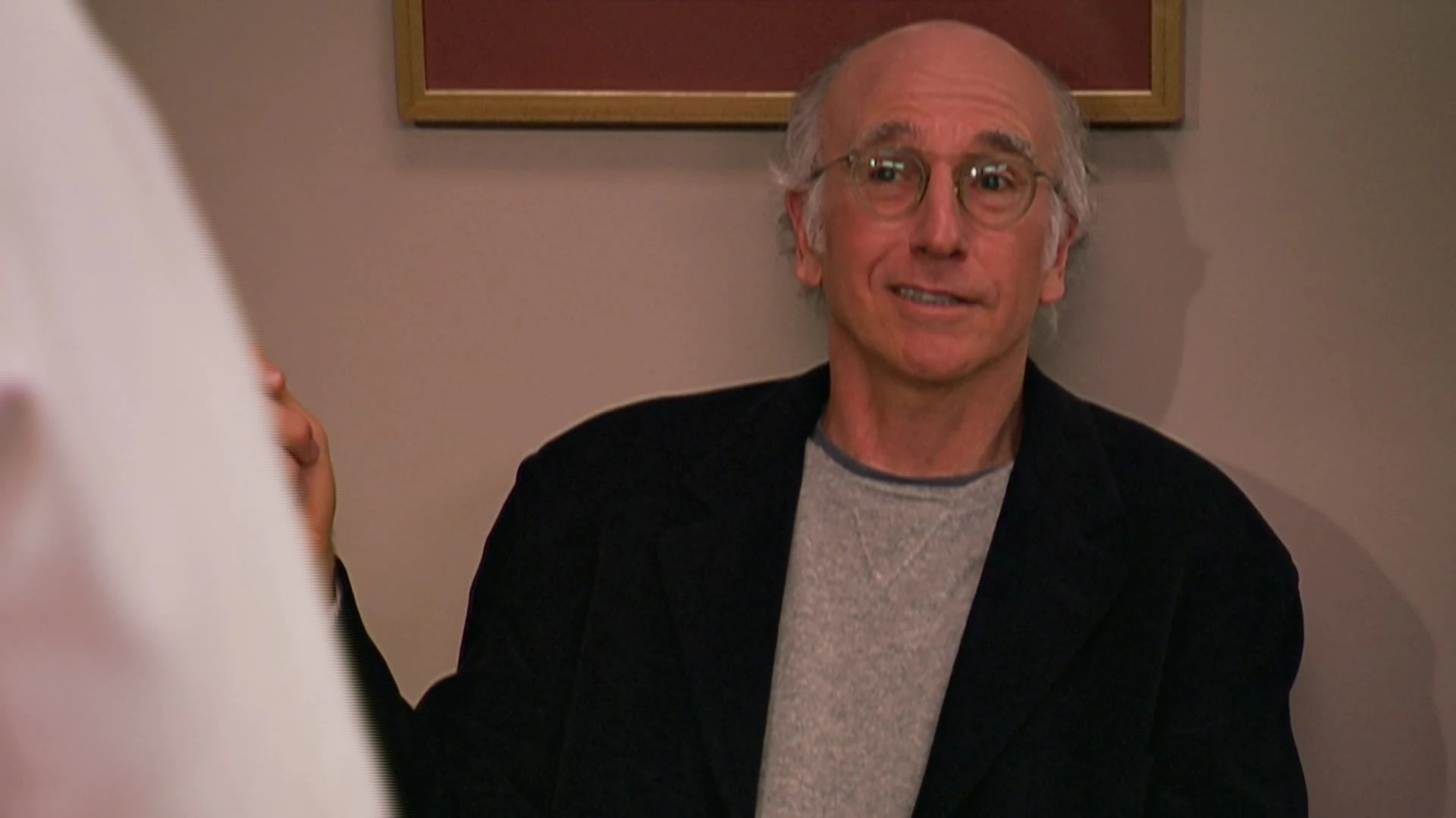 Ларри обвиняет своего соседа, Майкла Дж. Фокса, в домогательствах. Джефф принимает удар на себя вместо Сьюзи. Ларри отчитывают за неуместный подарок на день рождения сыну Дженнифер.