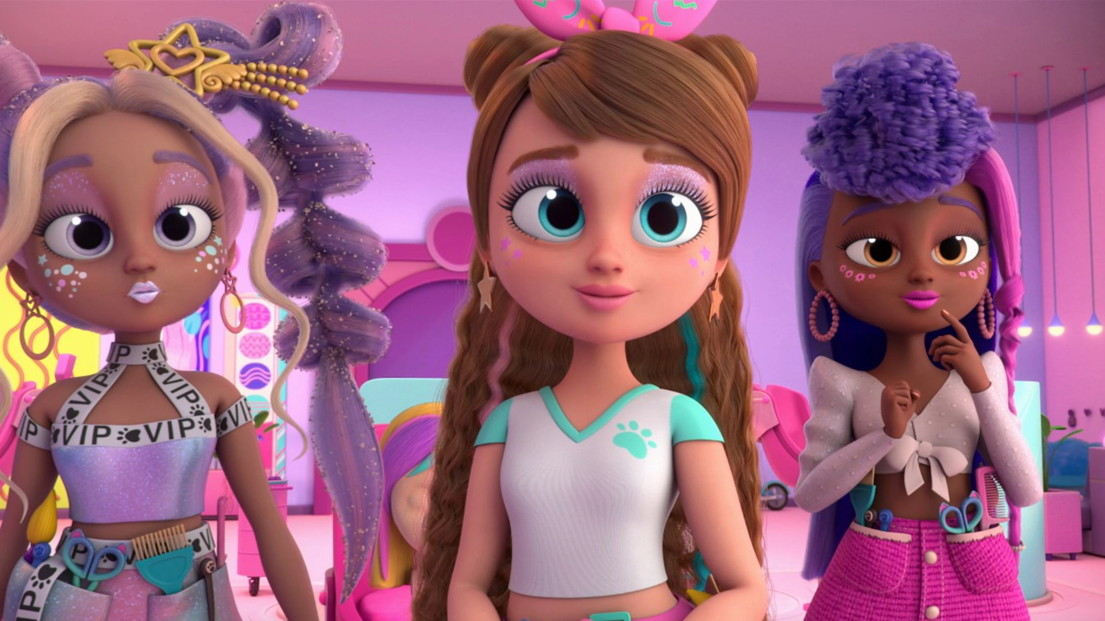 В городке Глэм-Сити живут самые модные собачки на свете. Знакомьтесь — Джулиет, Тэйлор, Алексия, Леди Джиджи, Гвен, Нила и Кьяра. Подружки любят яркие краски и наряды, они постоянно экспериментируют с причёсками, обожают приключения и каждый день придумывают что-то новенькое. Однажды девчонки находят загадочную потайную дверь, которая ведёт в салон красоты мечты! С помощью мастера-парикмахера Фабио и его племянницы Фабии крошки-пёсики преображаются до неузнаваемости. Но Фабио не только знает толк в идеальных укладках, локонах и блёстках — если девочки попали в переплёт, он всегда придёт на помощь.