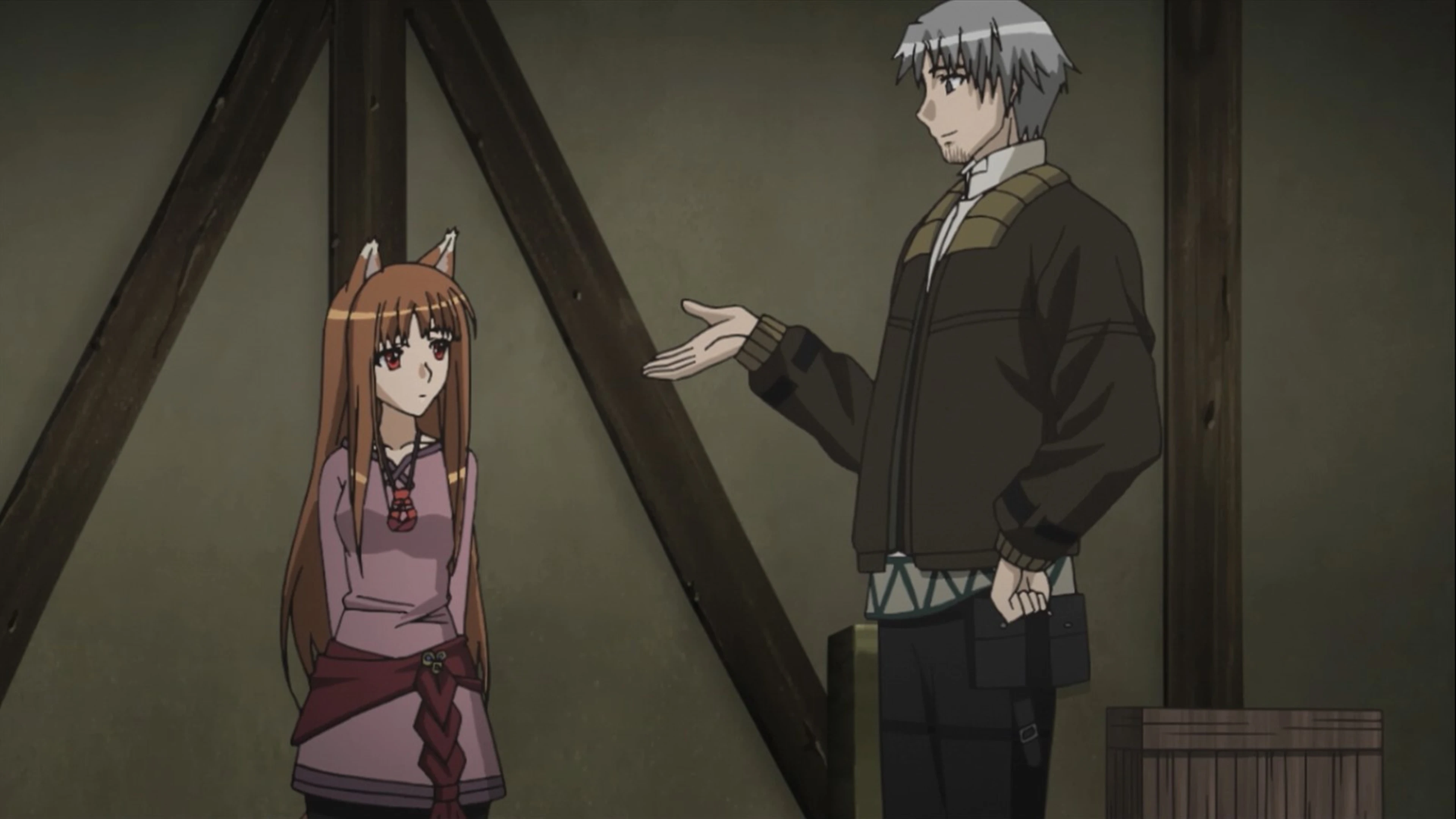 Любит человек побеждать мать-природу. Вот и крестьяне предпочли новые посевные технологии надежде на Богиню-волчицу Холо, тысячи лет охранявшую их урожай. Затосковала Богиня, но древний договор отменить могли только люди, давно о нём позабывшие. И тут нежданно-негаданно её освободил некто Лоуренс – парень видный, ловкий и сообразительный, ведь иными бродячие торговцы и не бывают. Приняв облик девушки, Богиня сделала Лоуренсу предложение, от которого он не смог отказаться – отвезти её домой, на родной Север, и обещала, что внакладе молодой купец не останется. Парень и сам очень рад поскорей покинуть деревню, где красотка Хлоя в свою очередь предложила такое, после чего близко знакомятся либо с шерифом, либо со священником.