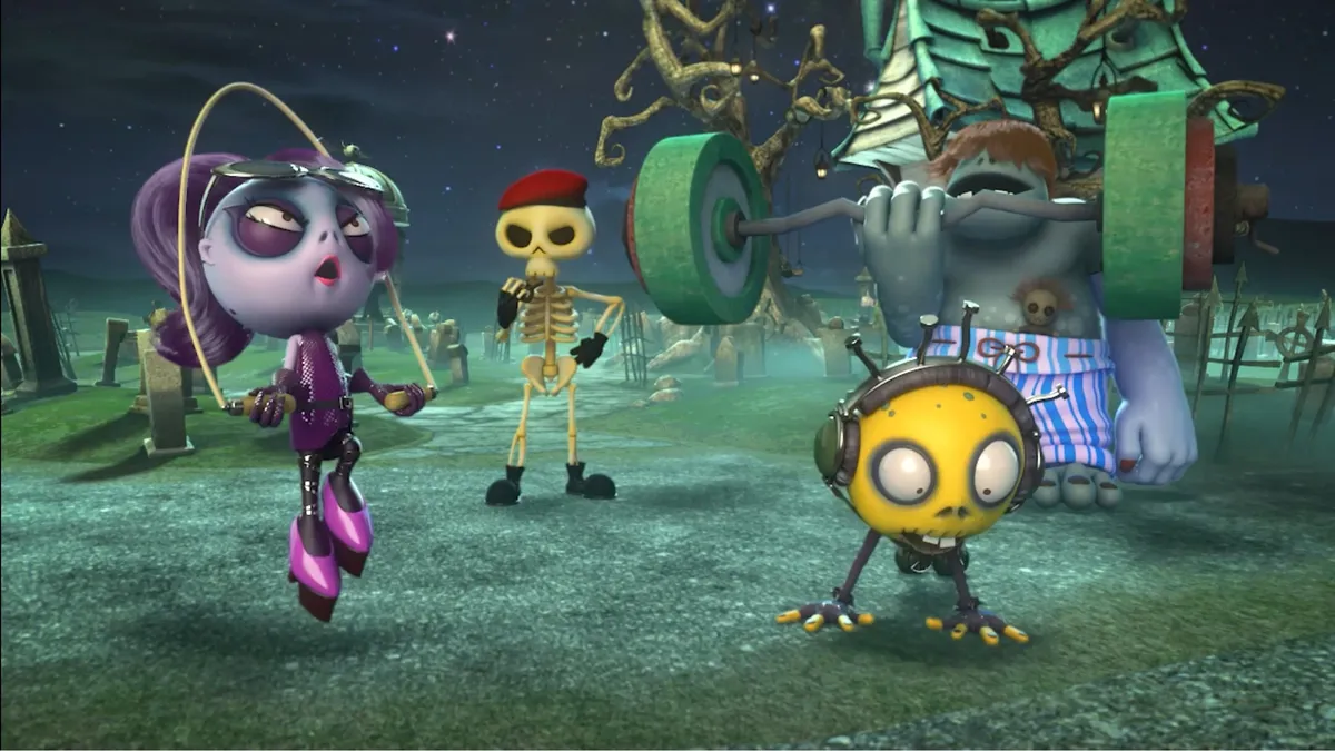 Хитовый мультсериал о дружелюбной нежити, с которой не страшно оставить ребёнка. Когда над городом восходит луна, просыпаются зомби. Но эти мертвяки не такие, как мы думаем: они любопытные, умные и любят повеселиться. Однажды дружная пятёрка зомби попадает в новую часть города — и находит там последнего живого человека! Они уже были готовы полакомиться, но маленькая Хана посчитала мертвяков своими друзьями. Устоять перед обаятельной девочкой непросто, а значит компанию ждут невероятные приключения. Что окажется сильнее: голод или доброта? Хана уверена — дружба спасёт мир.
