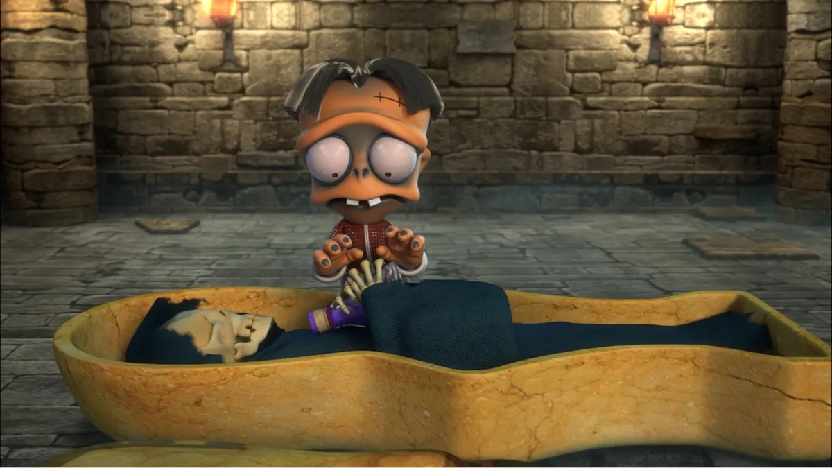 Хитовый мультсериал о дружелюбной нежити, с которой не страшно оставить ребёнка. Когда над городом восходит луна, просыпаются зомби. Но эти мертвяки не такие, как мы думаем: они любопытные, умные и любят повеселиться. Однажды дружная пятёрка зомби попадает в новую часть города — и находит там последнего живого человека! Они уже были готовы полакомиться, но маленькая Хана посчитала мертвяков своими друзьями. Устоять перед обаятельной девочкой непросто, а значит компанию ждут невероятные приключения. Что окажется сильнее: голод или доброта? Хана уверена — дружба спасёт мир.